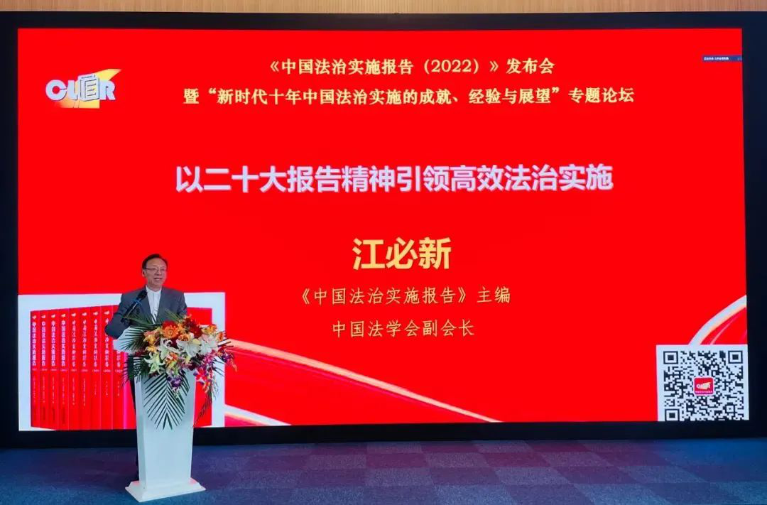 《中国法治实施报告》主编、中国法学会副会长江必新教授发表