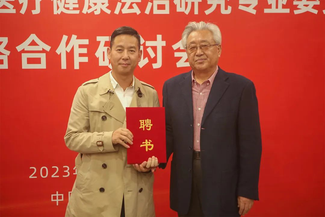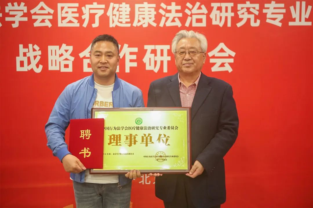 △最高人民法院咨询委员会副主任、最高人民法院原党组成员,国家二级大法官、审判委员会委员、中国行为法学会医疗健康法治研究专业委员会顾问孙华璞为北京车声数字科技有限公司董事长高红宾授牌并颁发聘书