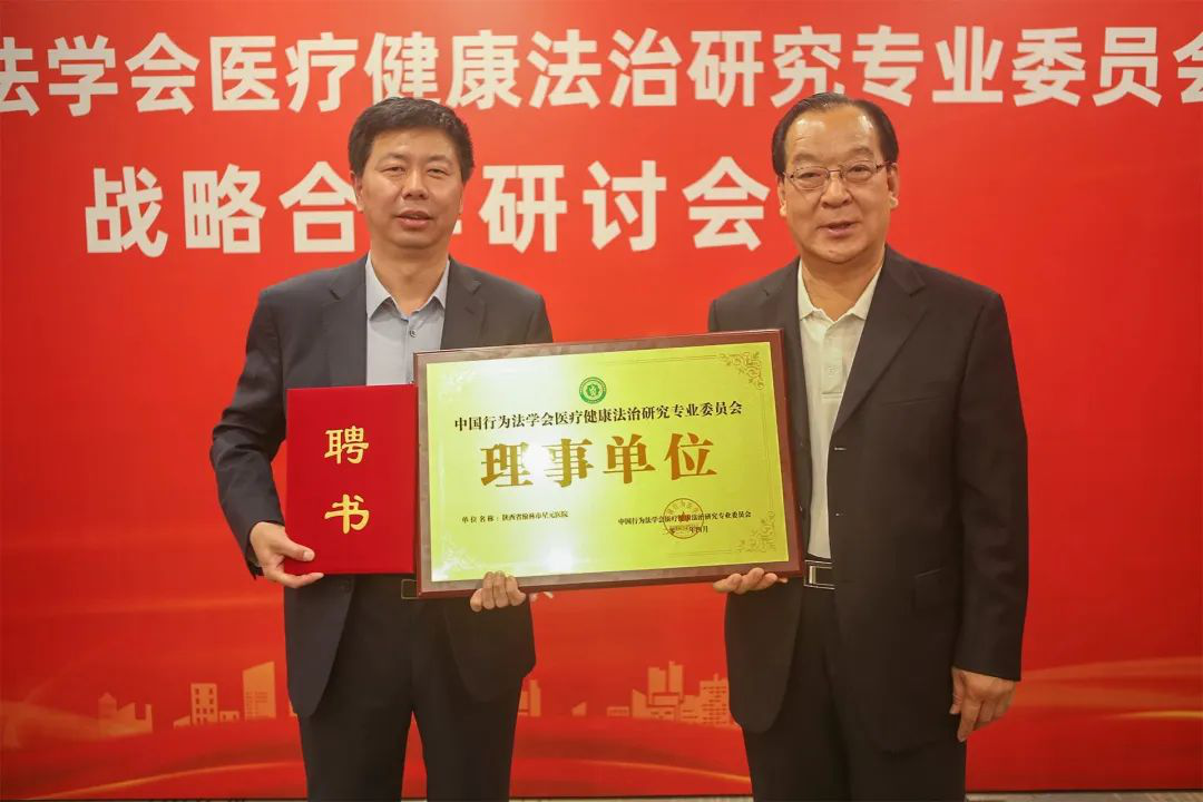 △中组部原副部级巡视专员、中国行为法学会医疗健康法治研究专业委员会顾问马瑞民为陕西省榆林市星元医院党委书记、院长王建睿授牌并颁发聘书