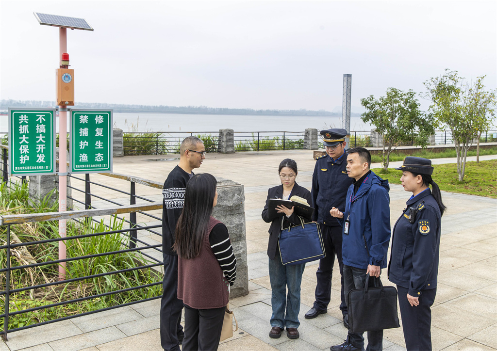 湖北省黄石市纪委监委强化协同监督,统筹推进长江经济带高质量发展和高水平保护。图为该市纪检监察干部围绕长江水源地保护等重点,会同职能部门开展联合监督检查。何戈 摄