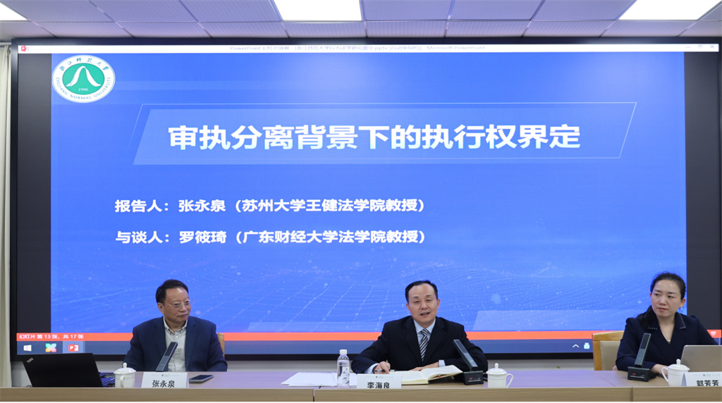 同日下午,行为法学术专题研讨会隆重举行,上海交通大学凯原法学院教授李学尧作“行为实验方法在法学领域的应用”专题报告,苏州大学王健法学院教授张永泉作“审执分离背景下的执行权界定”专题报告,华侨大学法学院教授许少波、广东财经大学法学院教授罗筱琦分别与谈。随后,与会专家围绕“法学研究方法的创新与实践”“行为实验方法在法学领域的应用及审执分离背景下的执行权界定”等前沿议题展开了深入探讨,最后,中国人民大学法学院教授肖建国作研讨总结。