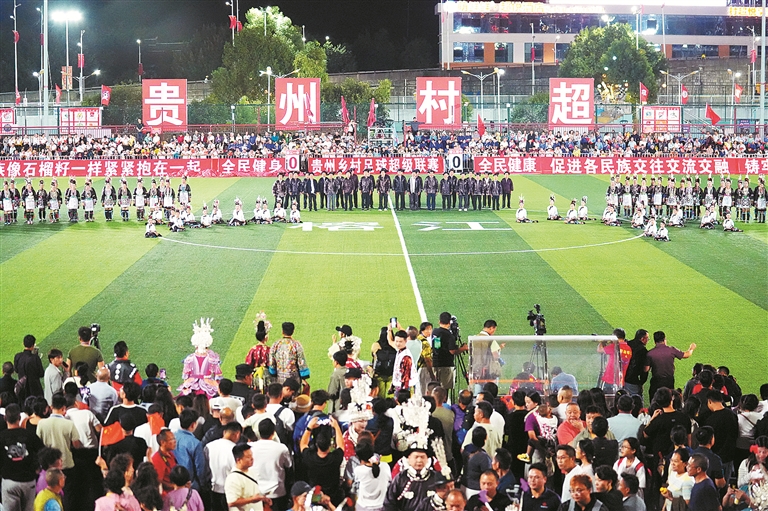 近日,贵州乡村足球超级联赛(村超)黔东南赛区启动仪式在榕江县举行,赛事采用省、市、县三级进阶模式,融合非遗展演、农特产品推介等活动,以“体育搭台、文化唱戏”助力乡村振兴。