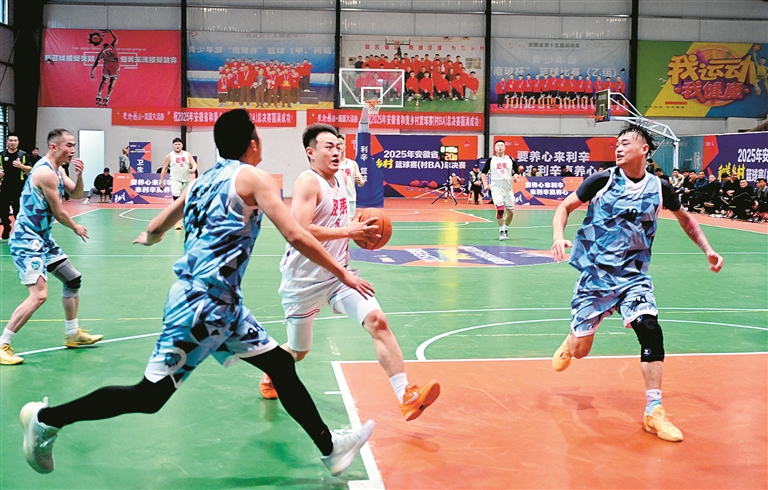 近日,2025年安徽省和美乡村篮球赛(村BA)总决赛在亳州市利辛县举行,8个地市的110多名篮球爱好者参加比赛。活动坚持“乡情、融合、全民、潮流”的办赛理念,构建“观赛+消费+体验”一体化的文旅融合场景。 图片来源:视觉中国
