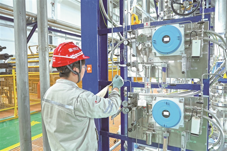 目前,项目运行已进入正轨,环境效益明显。“项目每年可消耗绿电约3.635亿千瓦时,预计年制氢量达7059万标方,可减少二氧化碳排放13.88万吨,其环境效益相当于新增约1400公顷的成熟森林一年的碳吸收量。”曹国安说。