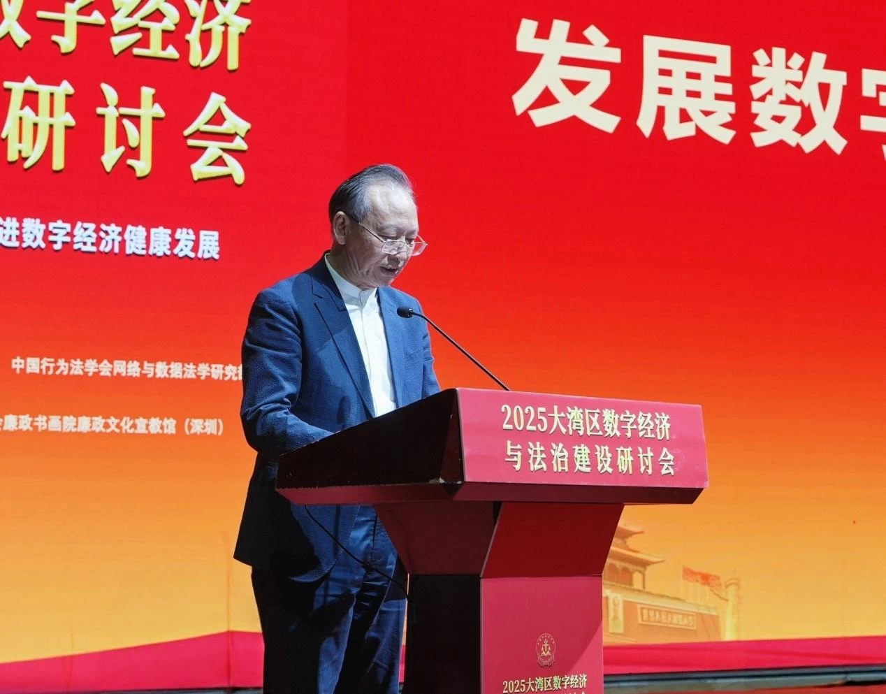 第十三届全国人大宪法和法律委员会副主任委员、中国社会工作联合会副会长江必新围绕“发展数字经济的制度因应”主题展开演讲。他强调,数字经济现在已成为了高质量发展的核心引擎,数字经济与数字资源为关键要素,以现代信息网络为主要载体,以信息通信技术融合应用。粤港澳大湾区,肩负着探索自主创新的重要使命,在各方的共同努力下,我国必将构建起系统完备的数字经济法治体系,为高质量发展提供有力保障,为全面建设社会主义现代化国家做出更大的贡献。