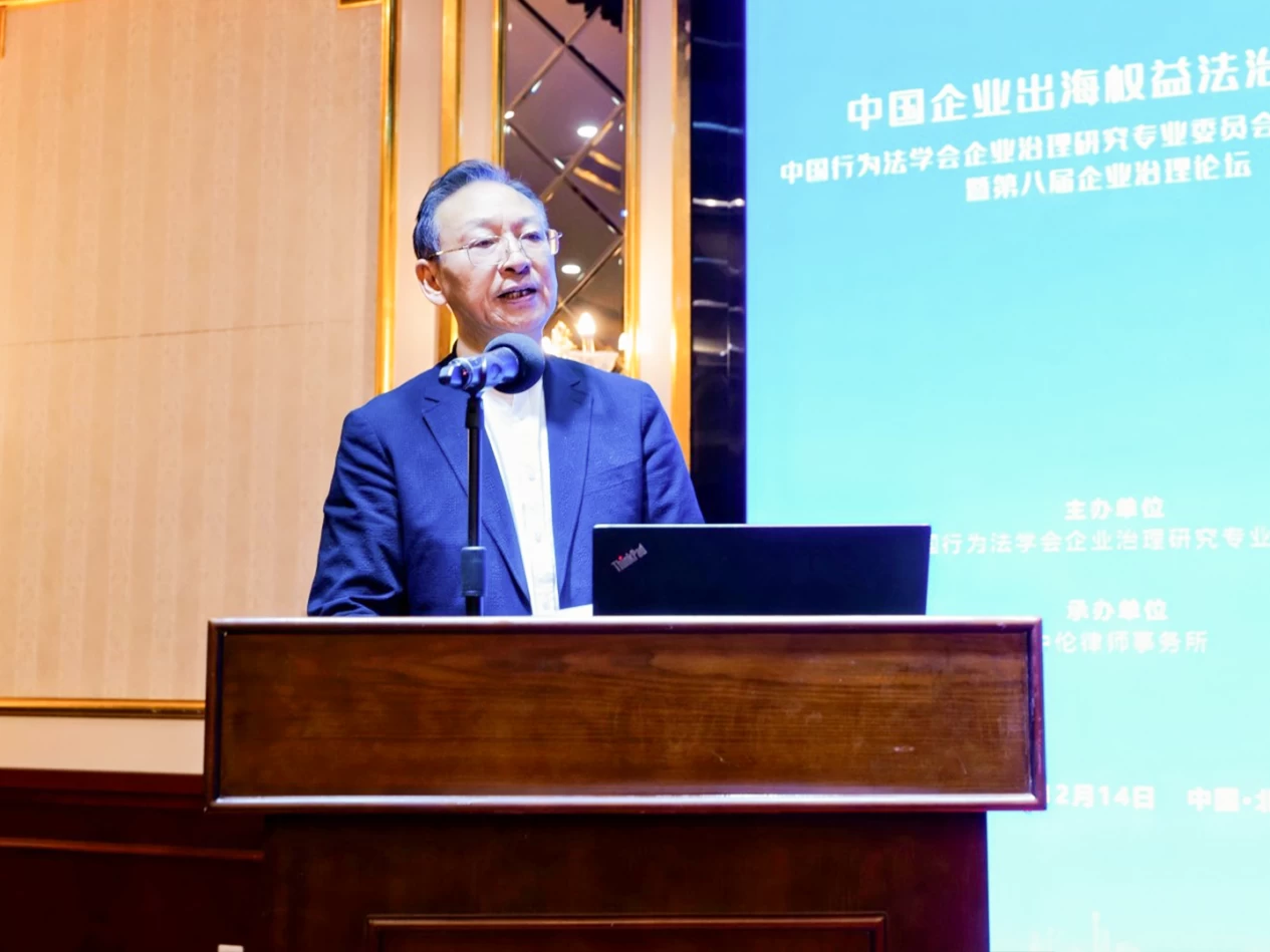 2025年12月14日,由中国行为法学会企业治理研究专业委员会主办、中伦律师事务所承办的中国行为法学会企业治理研究专业委员会2025年年会暨第八届企业治理论坛在北京顺利召开。本届论坛深入贯彻习近平总书记关于加强涉外法治建设的系列重要指示精神,积极响应国家关于加强涉外法治建设的战略部署,服务企业全球化发展的现实需求,以“中国企业出海权益法治保障”为主题,立足我国对外开放进入更高水平的新阶段,聚焦中国企业在跨境投资、国际经贸合作和全球化经营过程中面临的法律风险与制度挑战,系统研讨我国企业海外权益法治保障体系的构建路径,为高质量共建“一带一路”、推动中国企业安全稳健可持续出海提供有力法治支撑。
