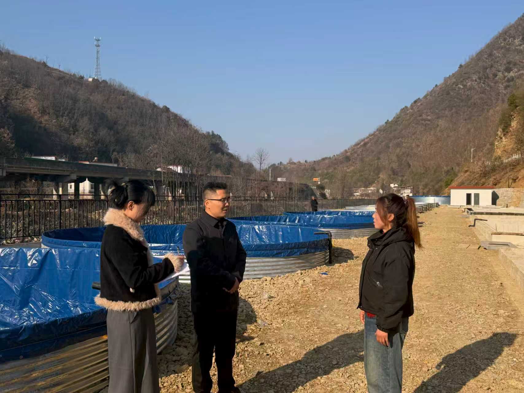 陕西省商洛市纪委监委通过以案代训、跟班锻炼等方式强化能力建设,提升基层纪检监察干部监督执纪执法水平。图为该市柞水县杏坪镇纪委工作人员在水产养殖基地了解有关情况。 姚明钊 摄