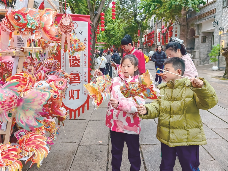 新春市集,不仅是置办年货的去处,也是“非遗”活态展示的舞台。现场红纸写春联、剪窗花、扎灯笼;舞龙、舞狮、地方剧团惠民演出;线上直播“云赶集”,让“非遗”多渠道展示……一边是丰盛的年货,一边是精彩的文艺互动演出,为新春市集增添了欢乐和喜悦。