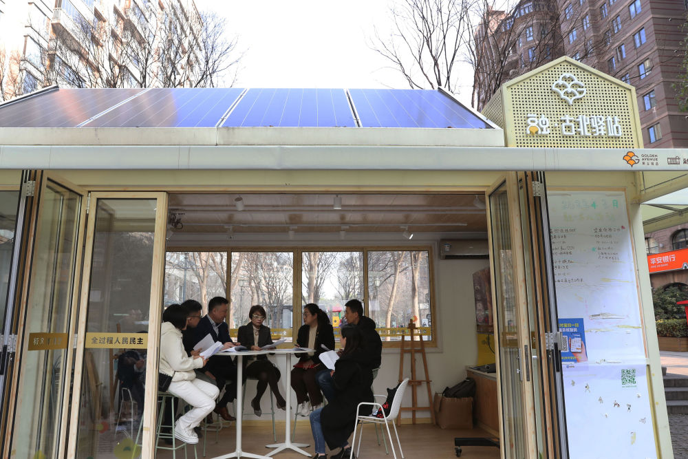 2023年2月17日,在上海虹桥街道“融·古北驿站”,人大代表向辖区内的商户宣传普及新施行的《上海市住房租赁条例》。虹桥街道是全国人大常委会法工委2015年在全国设立的首批四个基层立法联系点之一。新华社记者 刘颖 摄