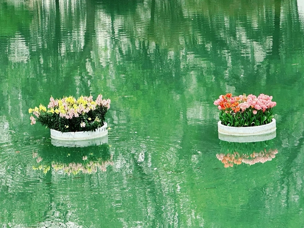 春水如靛,花影浮波。微风过处,涟漪轻漾,仿佛画笔在画布上轻轻落下一笔,把整个春天都揉进了这一汪静谧里。(安徽省泗县纪委监委供 封海庆 摄)